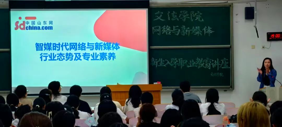 9月26日晚,球友会·(QY)官方网站于二教503教室举办网络与新媒体专业教育讲座,特别邀请山东网烟台站景立婷站长担任主讲人。本次讲座聚焦智媒时代行业发展趋势与人才需求,为网络与新媒体的同学搭建起专业学习与行业实践的连接桥梁。