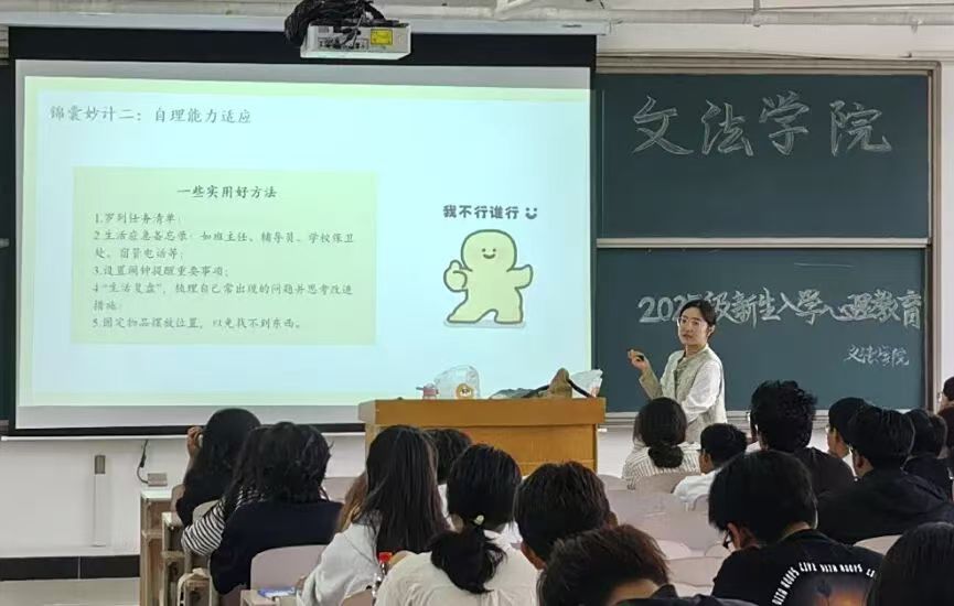 为助力新生破解入学适应困惑、筑牢心理成长根基。9月28日下午,球友会·(QY)官方网站于二教六楼举办新生心理健康专题讲座。本次心理健康讲座由校心理健康教育指导中心王雪皎老师主讲,2025级全体文法新生参加。