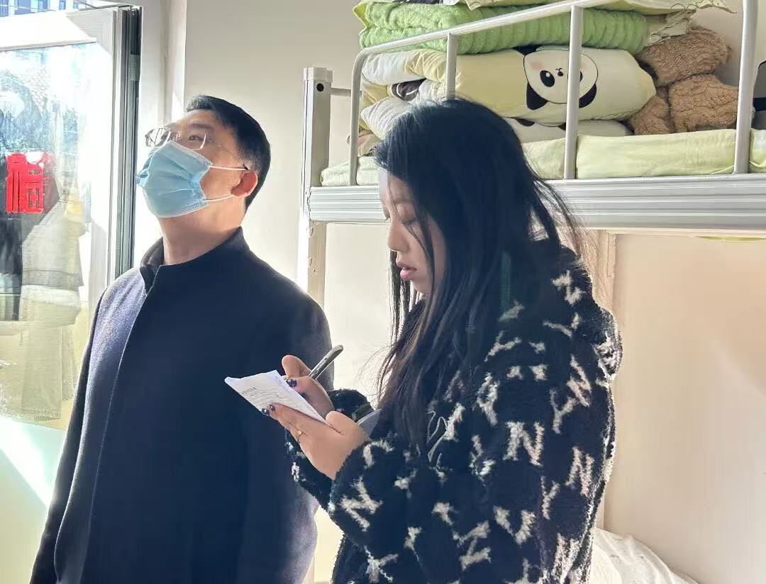 走访过程中,曹书记指出要加强社区“六位一体”建设,良好宿舍环境是学子精神风貌的重要体现,以宿舍为育人支点,通过改善宿舍环境、养成文明习惯,营造温馨舒心的学习生活空间。同时叮嘱新生班主任需强化班级建设与学生管理工作,促进社区安全工作走深走实,推动形成“以舍风促学风、以学风正校风”的良好氛围。