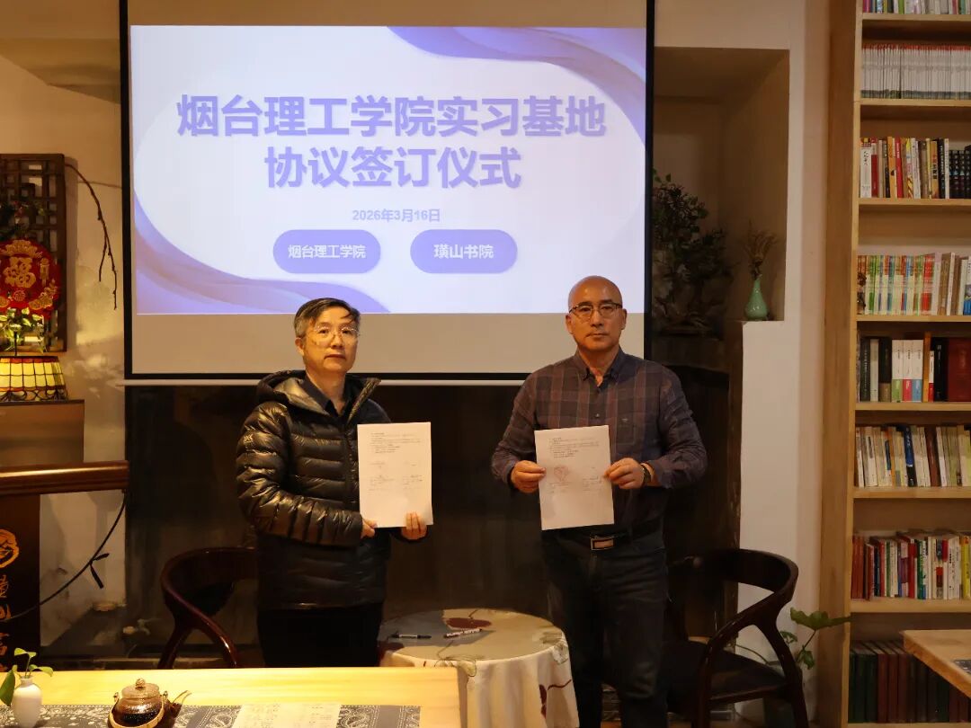 在座谈交流环节,双方围绕校地合作、文化传承、人才培养等核心议题进行了深入探讨。邢纪波教授介绍了书院丰富的文献资源、非遗项目以及馆藏书籍修复、活化利用等重点项目。苏春景校长介绍了学院的学科专业布局、人才培养特色及教学科研需求。双方一致认为,璜山书院的文化资源与学院的学科优势高度匹配,具备开展深度合作的坚实基础。在此次洽谈中,双方确定了共建教学与就业实习基地的核心合作内容,完成了实习基地协议签订与挂牌工作。基地将围绕三个方向开展合作:一是打造书院式特色教学阵地,结合部分专业课程开展沙龙式教学,使学生在实景课堂中加深对专业的认知;二是搭建学生实践与科研平台,组织学生参与书院文献整理等工作,鼓励学生以书院珍贵文献为选题开展学年论文、毕业论文研究,同时支持专业教师与书院联合申报教研科研课题,推动胶东文化研究成果转化;三是构建就业创业培养体系,依托书院的文化项目,培养学生文化传承、编辑出版等实践能力,组建特色就业创业团队,为学生提供多元化的就业实践机会。