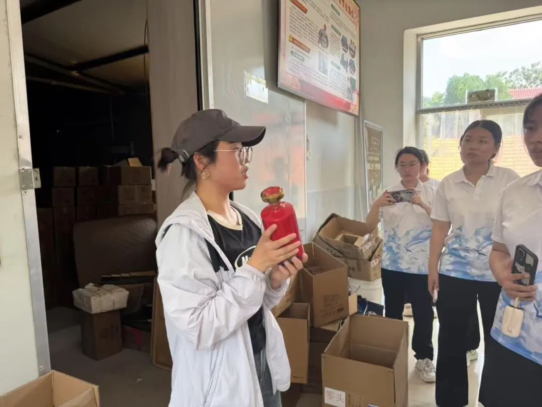离开乡村振兴馆,实践队伍来到里口山酒厂,该酒厂是里口山村根据道教全真派创始人王重阳“青杏”治病救人的典故,以“杏”为媒,以“杏”酿酒,实现了产销一体化。实践队员们品尝了甘甜的杏酒,参观了杏酒酿造过程。