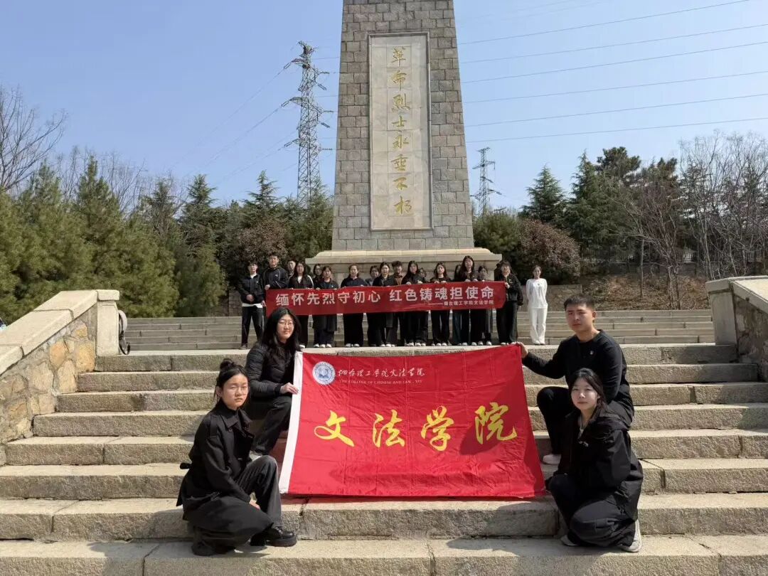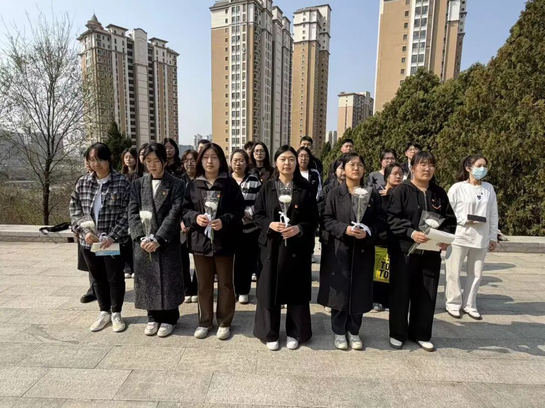 活动现场庄严肃穆,全体人员列队肃立,奏唱国歌、集体默哀,向革命先烈致以哀悼和敬意。随后,大家依次向烈士纪念碑敬献鲜花、瞻仰纪念碑,寄托追思。活动中,师生党员重温入党誓词,誓言铿锵,坚定初心使命;青马学员重温入团誓词,展现青年学子跟党走的决心。师生党员、入党积极分子、青马学员代表分别诵读致先烈书信,表达对英烈的缅怀,以及传承红色精神、勇担时代使命的信念。